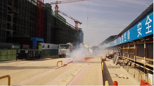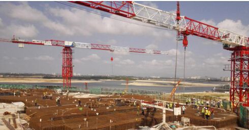 轉(zhuǎn)換層上壯觀的澆筑現(xiàn)場