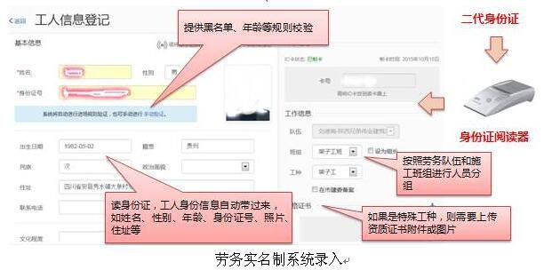 勞務(wù)實名制系統(tǒng)主要具備人員實名制、自動記錄考勤情況、監(jiān)督項目安全教育培訓及工資發(fā)放等功能。利用閱讀器自動讀取、核實身份證信息,校驗規(guī)避不合規(guī)人員。并自動生成考勤記錄,杜絕項目民工代簽、漏簽的同時,有效地規(guī)避了用人風險及惡意討薪。規(guī)范了公司勞務(wù)人員工資發(fā)放,大大提高了勞務(wù)工人出勤率及工作效率。此外,通過項目錄入勞務(wù)安全教育培訓名單,更加直觀清晰地監(jiān)督了工人安全教育培訓情況,增強了勞務(wù)人員的安全意識。