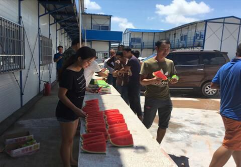7月15日一大早,凱里項目便將早早準(zhǔn)備好了西瓜、涼茶、藥品等防暑物品送去施工現(xiàn)場,對在高溫下堅守的施工員進(jìn)行慰問??吹绞┕と藛T吃著西瓜,喝著涼茶,臉上洋溢著微笑是對活動做好的肯定。