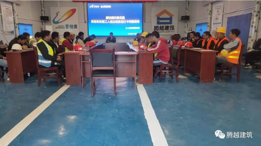 印象花溪項目在工人入場時,堅持統(tǒng)一實行先報備、先體檢、先交底、先教育、先核對的管理方式,嚴格審查工人年齡與健康問題,核對無誤后由項目勞務專員統(tǒng)一進行交底,完成教育交底后,方可入場。