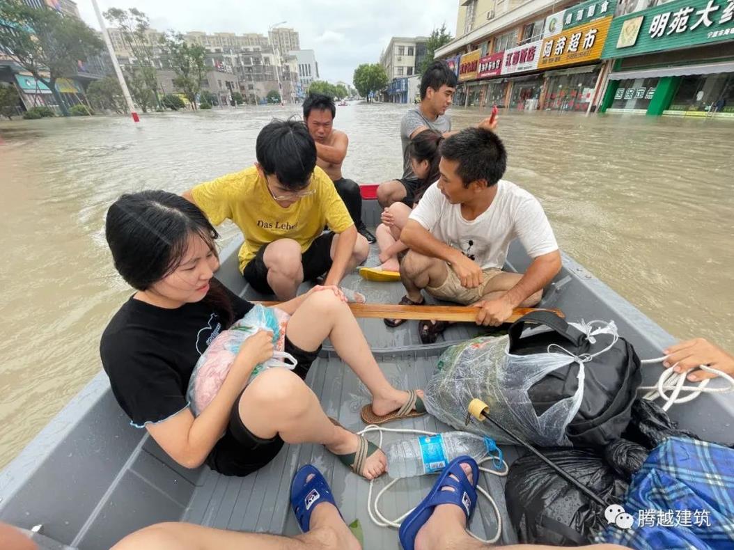 早在臺風來臨前,寧波聯(lián)東U谷項目就在公司與項目的有序安排下,400余名工友已安全轉(zhuǎn)移。為確保項目“無一人遺漏”,項目負責人王斌帶著部分堅守到最后的管理人員進行最后的安全排查。當排查完畢撤離時發(fā)現(xiàn),水深已經(jīng)過腰了,只能撐救生船離開項目。