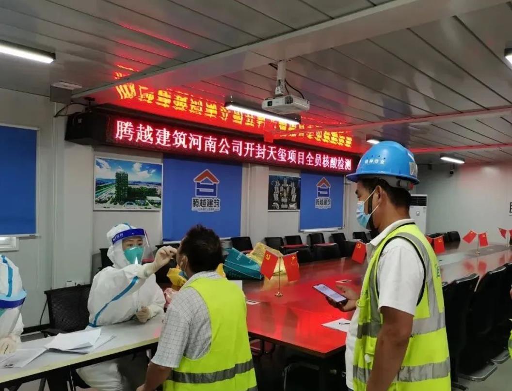 截止到目前,籌備口罩150000只、酒精350升、84消毒液800升、洗手液300升等防疫物資,鄭州市及周邊項目所有人員(管理人員、甲方、現(xiàn)場工人等)共計約1700人全部完成第一輪核酸檢測,為員工及工友生命健康安全筑牢保護罩!
