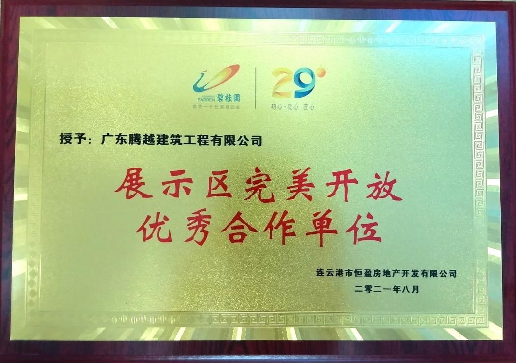 近日,騰越建筑3個項目先后獲評完美履約榮譽