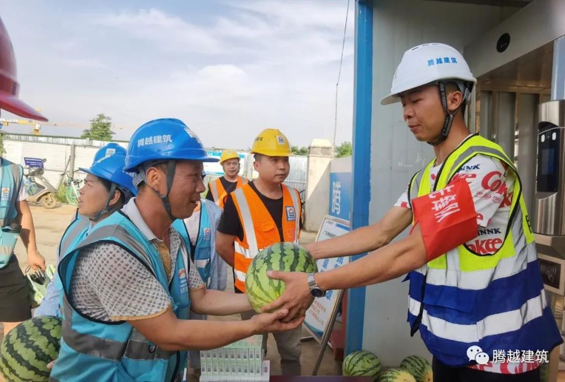 今年夏季,武漢高溫異常,天氣十分炎熱,作為黨員先鋒隊(duì)一員,他總是沖在最前面,細(xì)心為工友切西瓜,發(fā)放防暑降溫藥品。炎熱的夏天,他的衣服總是濕了干,干了濕,他就是這樣一個(gè)任勞任怨,始終保持正能量前行的人。