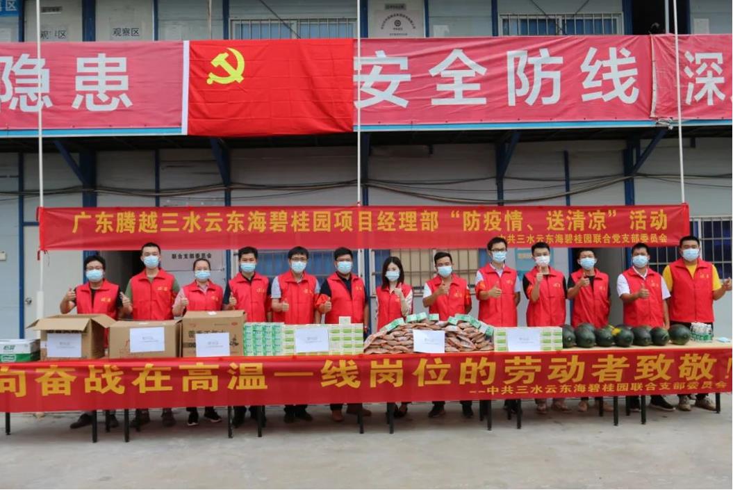 黨員先鋒隊(duì)在項(xiàng)目開(kāi)展“防疫情送清涼”活動(dòng)