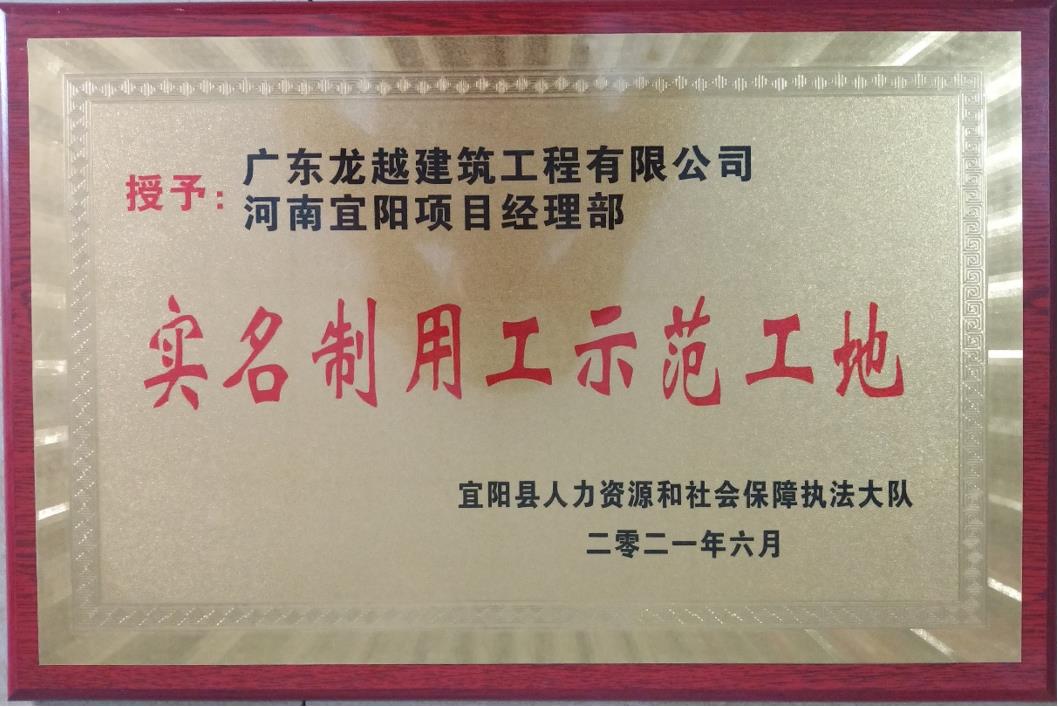 2021年河南公司宜陽(yáng)項(xiàng)目不斷進(jìn)步,年初被洛陽(yáng)市評(píng)為“安全文明工地”,6月份又被宜陽(yáng)縣評(píng)為“實(shí)名制用工示范工地”。