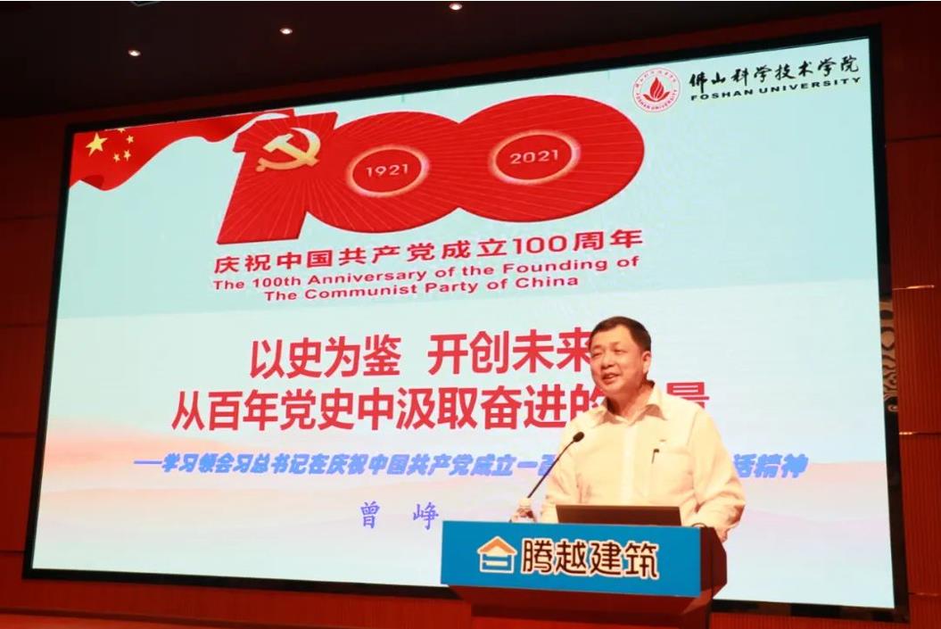 本次共建活動(dòng),騰越建筑黨委還有幸邀請了佛山科學(xué)技術(shù)學(xué)院黨委書記、教授曾崢為騰越建筑全體黨員講授專題黨課,曾教授以《以史為鑒,開創(chuàng)未來——從百年黨史中汲取奮進(jìn)的力量》為題,全面解讀了中國共產(chǎn)黨發(fā)展簡史,深入淺出,以史為鑒講述了中國共產(chǎn)黨究竟是什么樣的政黨,提出中國共產(chǎn)黨為什么“能”、馬克思主義為什么“行”,中國特色社會(huì)主義為什么“好”三大問題。讓騰越建筑黨員們在黨史學(xué)習(xí)中感受思想偉力,增強(qiáng)政治領(lǐng)悟力、判斷力,傳承紅色基因,發(fā)揚(yáng)革命精神,堅(jiān)定發(fā)展信心,不斷助力黨委促進(jìn)黨建工作和業(yè)務(wù)工作有機(jī)融合,推進(jìn)學(xué)習(xí)型、服務(wù)型、創(chuàng)新型的黨組織建設(shè),實(shí)現(xiàn)非公企業(yè)黨建工作再上臺(tái)階。