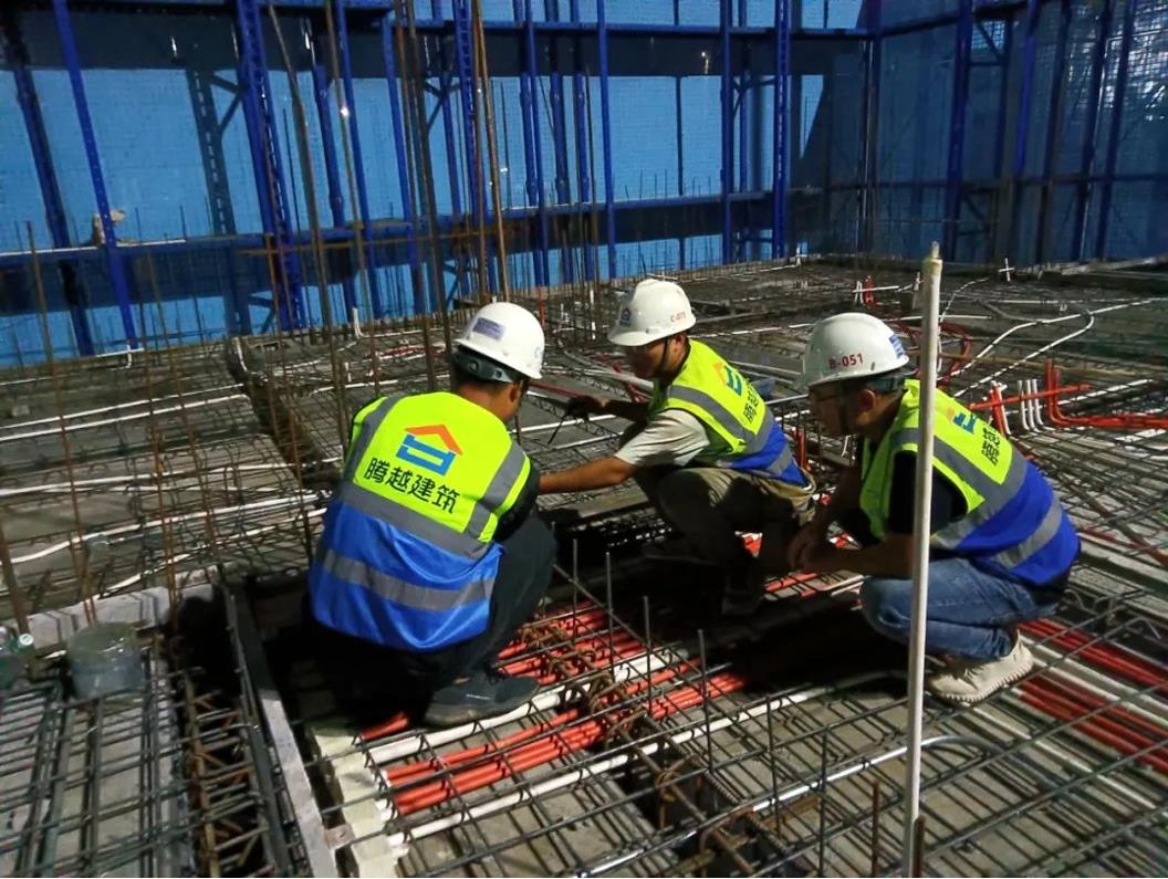 晚上11點(diǎn)項(xiàng)目鐵軍們正在進(jìn)行混凝土澆筑前檢查
