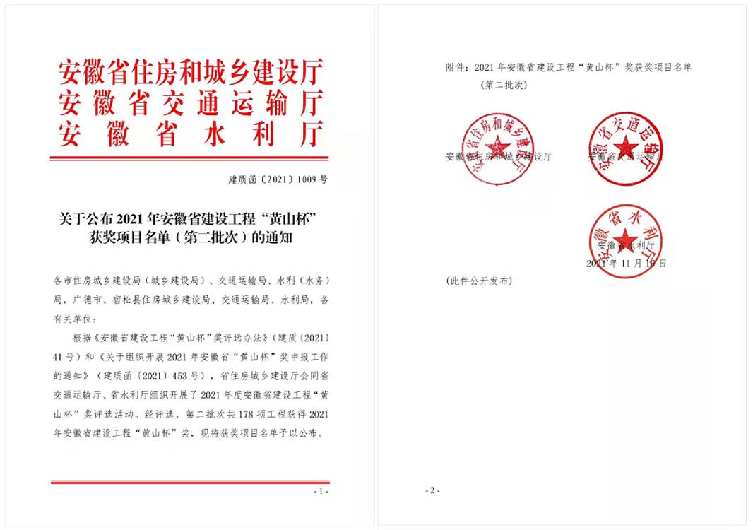 “黃山杯”是安徽省建筑行業(yè)建設(shè)工程質(zhì)量的最高榮譽(yù)獎(jiǎng)項(xiàng),由建筑施工企業(yè)自愿申報(bào),經(jīng)市(州)建設(shè)行政主管部門和省級(jí)有關(guān)部門擇優(yōu)推薦后進(jìn)入評(píng)選。評(píng)選過程要經(jīng)過形式審查、現(xiàn)場(chǎng)復(fù)查、評(píng)審委員會(huì)評(píng)審及廳長(zhǎng)辦公室審定多重程序,層層篩選,標(biāo)準(zhǔn)之高可想而知。