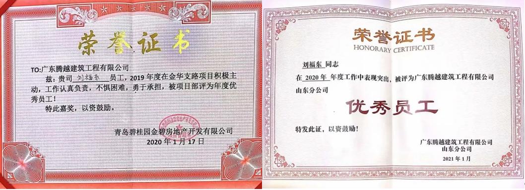 劉福東說(shuō),騰越建筑給予了他很多機(jī)會(huì)和空間,不論自己是技術(shù)員還是技術(shù)經(jīng)理,他都非常珍惜。百姓因安居樂(lè)業(yè)而充滿希望,社會(huì)因我們的存在而變得更加美好。在今后的工作中,他將繼續(xù)不忘初心,砥礪前行,為建設(shè)美好家園不懈奮斗!