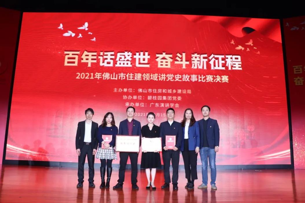 2021年12月在佛山市住建領域黨史故事演講比賽決賽中,楊靜代表公司出戰(zhàn),初次參加黨史比賽的她就以98.34分的高分榮獲總決賽第一及最佳人氣獎,為公司贏得誠信加分7分。