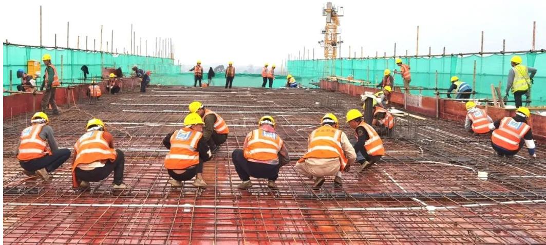 其次,項(xiàng)目還分批次規(guī)劃人力、設(shè)備、材料投入,確保施工最高峰時(shí)期10個(gè)工作面都能滿足同時(shí)施工。通過項(xiàng)目科學(xué)布排,全員全力以赴,項(xiàng)目每天現(xiàn)場(chǎng)至少保障有200個(gè)木工、120個(gè)鋼筋工、150個(gè)鐵工,為項(xiàng)目后期建設(shè)搶占了絕佳的時(shí)間。