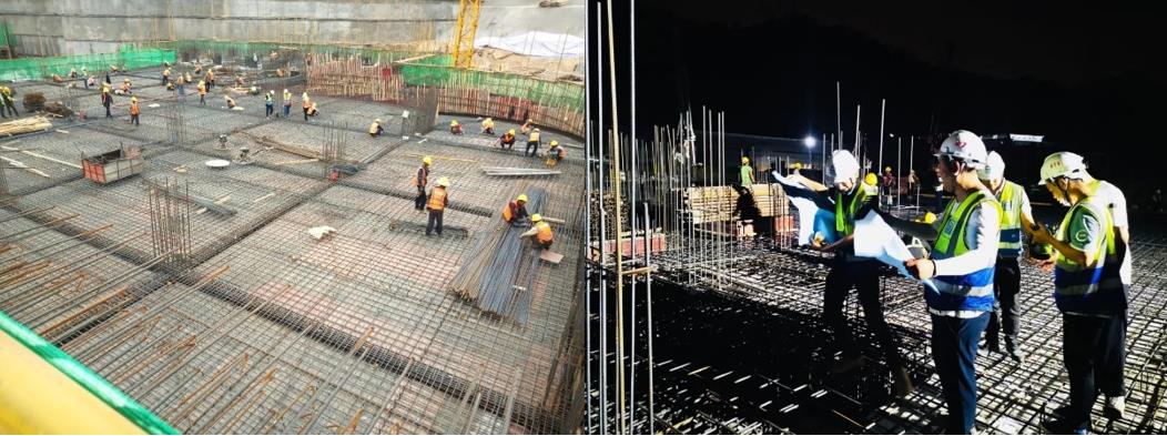 施工現(xiàn)場人機(jī)和諧運(yùn)作,近百名工人,4大工種在科學(xué)鋪排下,流水交叉作業(yè)、輪班作業(yè),隨著作業(yè)面的不斷展開,工人與班組持續(xù)增加,為項(xiàng)目工期推進(jìn)做好一切保障。