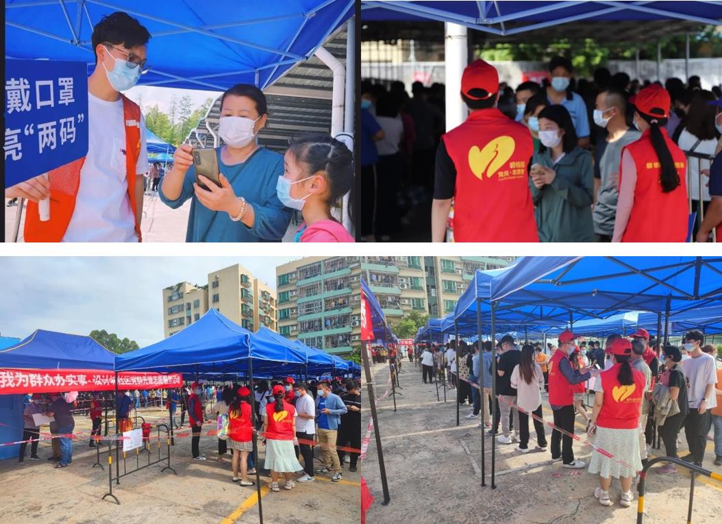 2022年4月11日,佛山市順德全區(qū)大范圍開展全員核酸檢測,面對近期嚴(yán)峻的防疫形勢,北滘鎮(zhèn)多個核酸檢測點人滿為患。疫情之下,騰越建筑聞訊而動,吹響志愿者“集結(jié)號”,積極溝通當(dāng)?shù)厣鐓^(qū)及居委會,第一時間派出50余名優(yōu)秀志愿者前往北滘鎮(zhèn)人力資源市場核酸檢測點,助力全員核酸檢測工作。