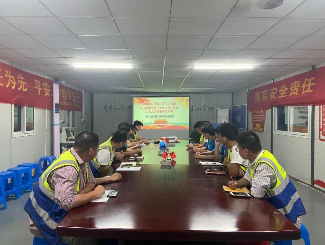 在紅色工地建設(shè)方面,舟山臨城項(xiàng)目始終堅(jiān)持以人為本,為群眾做實(shí)事。圍繞 “學(xué)黨史、悟思想、辦實(shí)事、開新局”等主題傳播“紅色文化”,項(xiàng)目先后組織“黨員的責(zé)任與擔(dān)當(dāng)”書記講黨課活動(dòng),《長(zhǎng)津湖》紅色主題觀影活動(dòng), 通過一系列文化活動(dòng),根植“紅色基因”。
