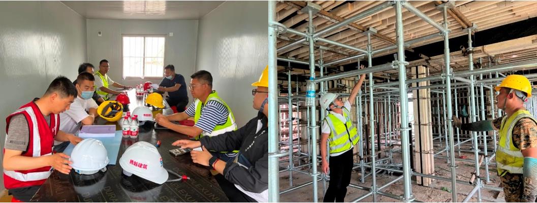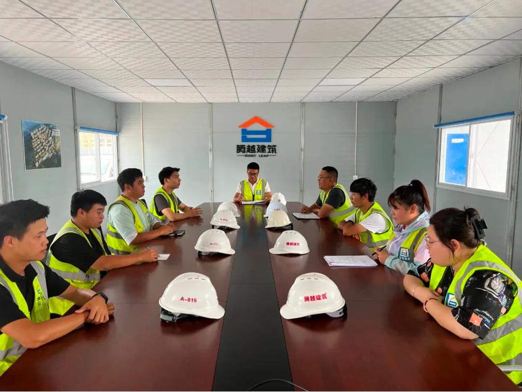 為按時(shí)履約,程國啟以身作則,在項(xiàng)目工作鋪排策劃會(huì)上,申明騰越鐵軍“完美交付”的理念,帶領(lǐng)全體放棄假期,科學(xué)鋪排施工計(jì)劃,為全體人員進(jìn)行責(zé)任分工,制定24小時(shí)輪值表,搶白天戰(zhàn)黑夜,管理人員常駐現(xiàn)場,一面輪值巡邏保證現(xiàn)場安全,一面每晚召開進(jìn)度銷項(xiàng)會(huì),高效利用每天的每一小時(shí),及時(shí)把控現(xiàn)場動(dòng)態(tài)。