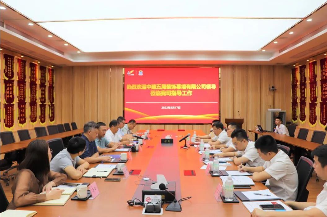 騰越建筑總經(jīng)理馬小軍首先對中建五局裝飾幕墻有限公司董事長李滔一行領(lǐng)導(dǎo)的蒞臨表示熱烈的歡迎,并認(rèn)真地介紹了騰越建筑的發(fā)展歷程、核心優(yōu)勢及科技建造。