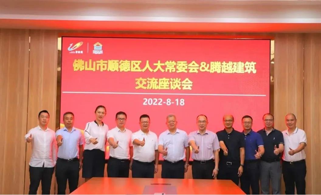 2022年8月18日,佛山市順德區(qū)人大常委會主任劉銘恩,副主任李福信等領(lǐng)導(dǎo)蒞臨騰越建筑調(diào)研座談。騰越建筑總經(jīng)理馬小軍,執(zhí)行總經(jīng)理鄧培初,總經(jīng)理助理卿上偉,市場營銷總監(jiān)薛菲及公司相關(guān)部門領(lǐng)導(dǎo)出席。