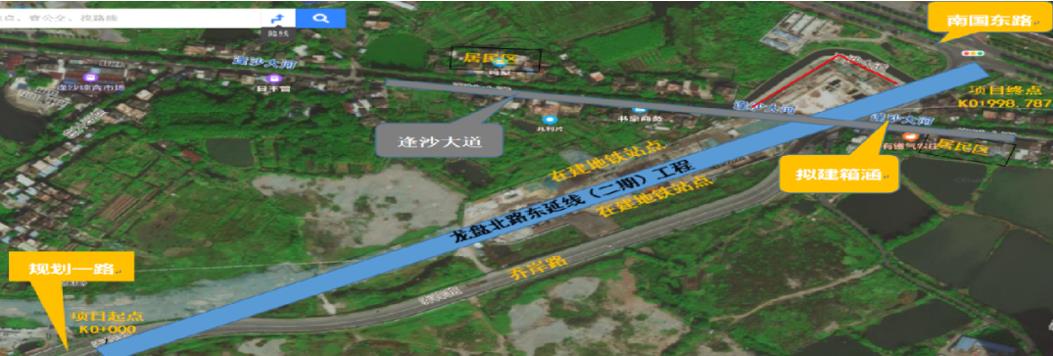 佛山市順德區(qū)龍盤(pán)北路東延線(二期)工程建設(shè)工程本項(xiàng)目為新建道路,整體呈東西走向,項(xiàng)目建設(shè)地點(diǎn)在大良街道范圍內(nèi),路線全長(zhǎng)約998.787m,按城市主干道標(biāo)準(zhǔn)建設(shè),雙向六車(chē)道,設(shè)計(jì)速度為50公里/小時(shí),道路紅線寬40m,項(xiàng)目起點(diǎn)為龍盤(pán)北路與規(guī)劃一路交叉口(設(shè)計(jì)起點(diǎn)樁號(hào)∶K0+00),接已建項(xiàng)目龍盤(pán)北路一期,經(jīng)逢沙大道、規(guī)劃路、規(guī)劃二路,終點(diǎn)止于現(xiàn)狀南國(guó)東路交叉口(設(shè)計(jì)終點(diǎn)樁號(hào)∶K0+998.787)。
