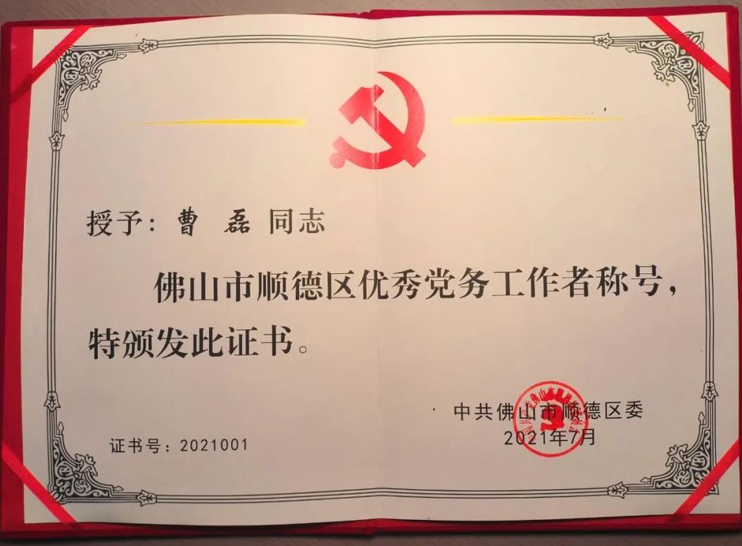2021年佛山市順德區(qū)優(yōu)秀黨務(wù)工作者