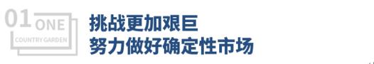 在房地產(chǎn)市場(chǎng)持續(xù)深度調(diào)整過(guò)程中,碧桂園一直強(qiáng)調(diào)要保持危機(jī)意識(shí),全面檢視經(jīng)營(yíng)管理各個(gè)環(huán)節(jié),并加快自我革新以更好地適應(yīng)外部環(huán)境變化,圍繞全競(jìng)提升、精細(xì)化管理而努力,使公司繼續(xù)保持穩(wěn)健經(jīng)營(yíng)。