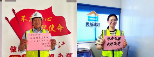 在考點(diǎn)外,騰越建筑河南、北京、江西分公司黨總支部設(shè)置服務(wù)小站,佛肇、粵東、皖東分公司黨總支部組織項(xiàng)目黨員及志愿者每人為高考學(xué)子寫下了一句祝福,祝愿莘莘學(xué)子能取得佳績,未來有更多的棟梁之才加入騰越建筑大家庭。