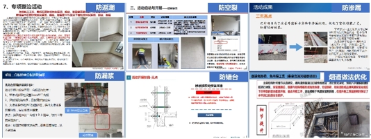 截止11月30日,各子分公司累計(jì)提報(bào)18項(xiàng)研究成果,累計(jì)獲取省級以上質(zhì)量創(chuàng)優(yōu)獎項(xiàng)共23個(gè),為施工現(xiàn)場抹灰開裂、屋面保護(hù)層開裂、外墻外窗滲漏、管根滲漏、返潮、錯(cuò)臺等常見行業(yè)質(zhì)量通病提供了諸多解決方案。同時(shí)也總結(jié)了更優(yōu)秀的降本提質(zhì)做法,如新型鋁模傳料口模具、煙道免卸荷免吊模工藝、新型防水材料技術(shù)等。