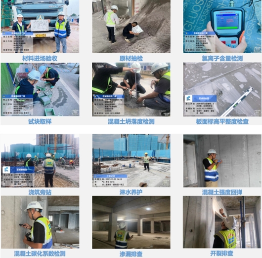 各項(xiàng)目聚焦混凝土工程專項(xiàng)檢查,加強(qiáng)了對砼澆筑令、材料計(jì)劃、原材料抽檢、進(jìn)場驗(yàn)收、旁站監(jiān)督、養(yǎng)護(hù)及砼強(qiáng)度回彈等關(guān)鍵環(huán)節(jié)的管控,切實(shí)保障結(jié)構(gòu)安全。
