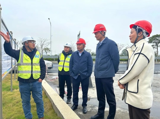 北滘鎮(zhèn)黨委書記、鎮(zhèn)長王德華在現(xiàn)場聽取管理人員介紹項(xiàng)目建設(shè)情況(右二)