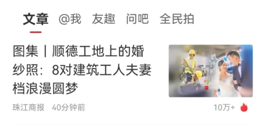為工友拍婚紗照活動(dòng)獲珠江商報(bào)專題報(bào)道閱讀量破10萬(wàn)+