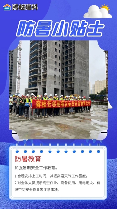 入夏以來,騰越建科集團積極落實各項防暑降溫措施,切實保障廣大勞動者的身體健康和勞動安全,陸續(xù)開展安全教育、送清涼、慰問等一系列活動,覆蓋24個區(qū)域公司,約40000名工友。